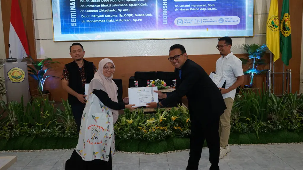 Selain itu, dr. Lukman Oktadianto, Sp.A(K) yang juga merupakan alumni FK UNEJ, tampil sebagai narasumber dengan membawakan materi bertajuk *Onkologi Pediatrik di Layanan Primer: Tantangan Deteksi Dini di Populasi Anak*. Kehadirannya menambah bobot akademik dalam seminar ini sekaligus menjadi inspirasi bagi mahasiswa maupun peserta lain.