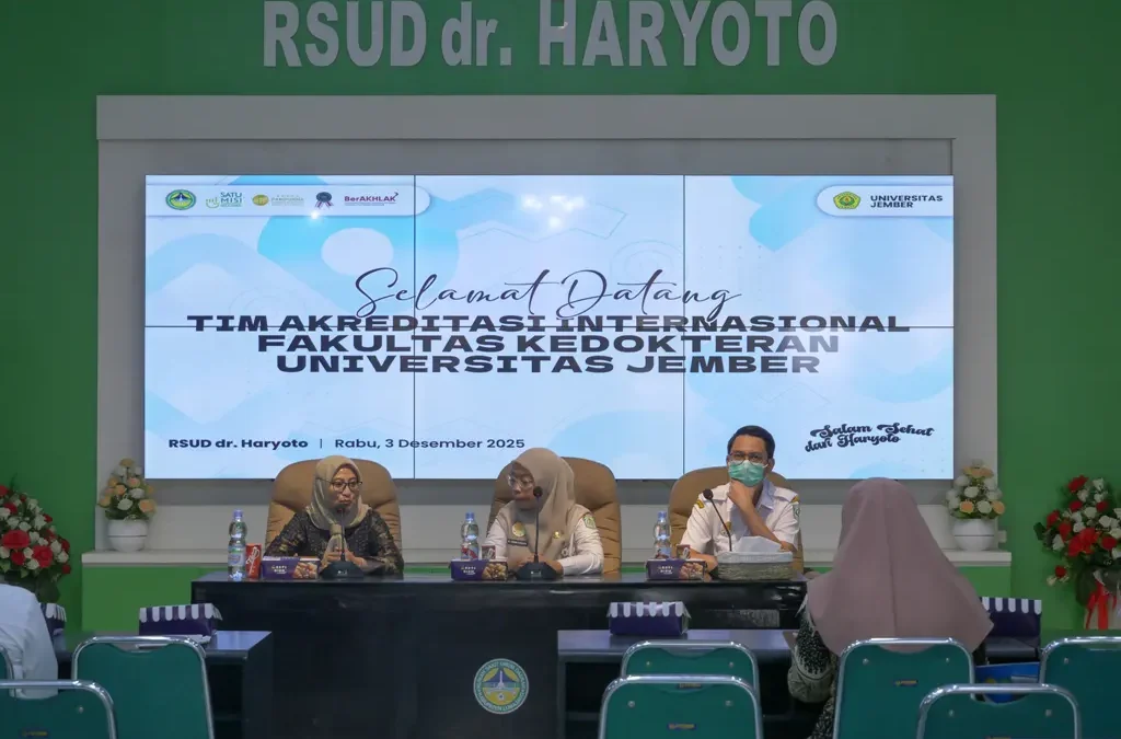 Agromedis – Fakultas Kedokteran Universitas Jember (FK UNEJ) melakukan kunjungan ke RSUD dr. Haryoto Lumajang dalam rangka koordinasi persiapan akreditasi internasional. Kegiatan ini merupakan bagian dari upaya strategis FK UNEJ dalam memperkuat jejaring rumah sakit pendidikan serta memastikan kesiapan institusi dan wahana pendidikan klinik dalam memenuhi standar internasional.