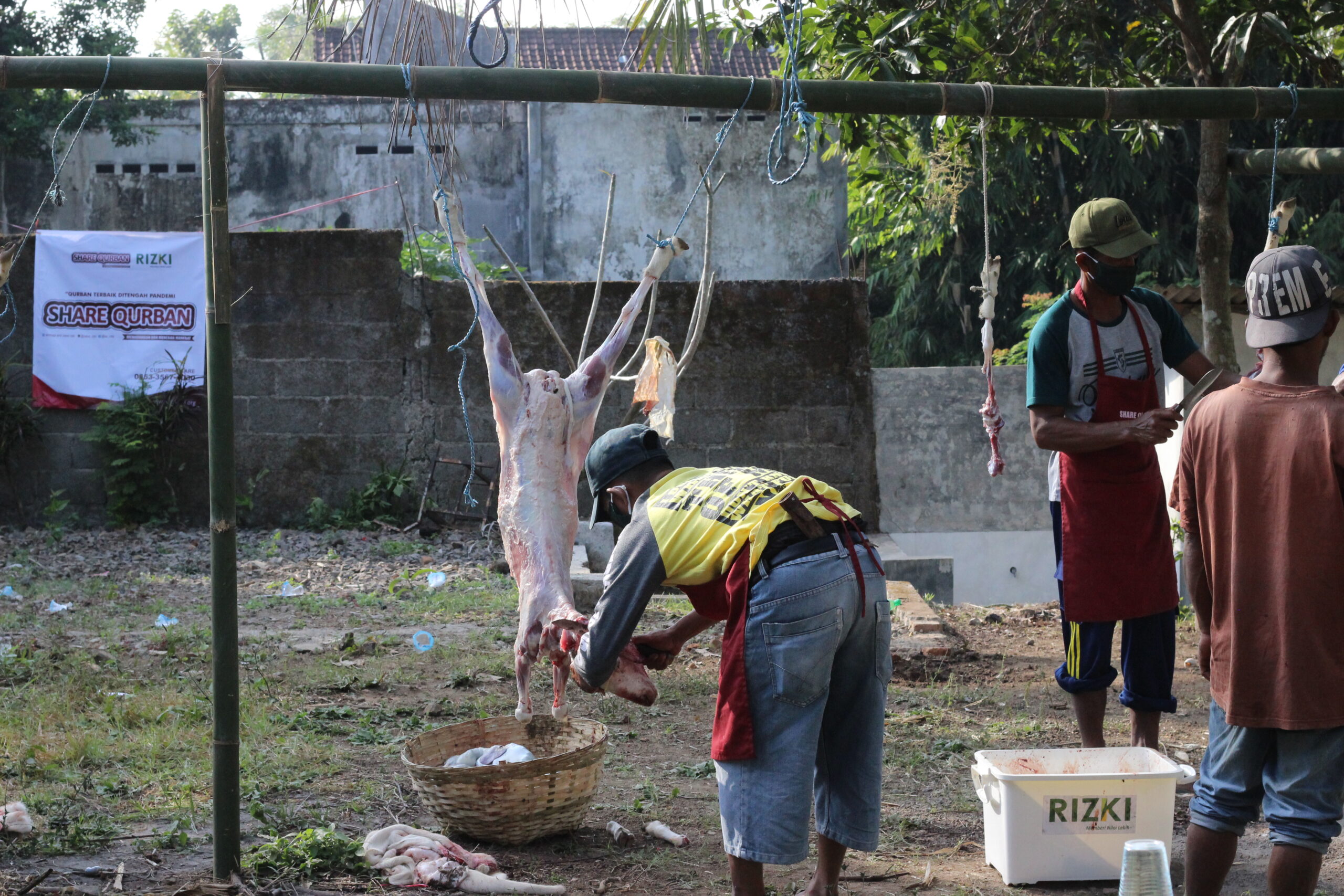 Proses pemotongan hewan Qurban diambil alih oleh pihak lembaga RIZKI, yang berlokasi di Jalan Bakso Kabut, Kemuning Lor, Arjasa, Kabupaten Jember pada pukul 07:00-10:00 WIB. Saat Pemotongan didampingi dan diawasi oleh 4 panitia untuk meminimalkan kerumunan dan memastikan penyembelihan telah memenuhi protokol kesehatan yang berlaku. Adapun pembagian daging Qurban dilaksakan di Kampus FK UNEJ pada pukul 11:00-13:00 WIB dengan sasaran civitas akademika dan masyarakat sekitar FK UNEJ yang berhak dan membutuhkan dengan mengikuti prosedur protokol kesehatan yakni berjarak 1 meter dalam antrian dan tentunya menggunakan masker dalam pengambilan daging Qurban.