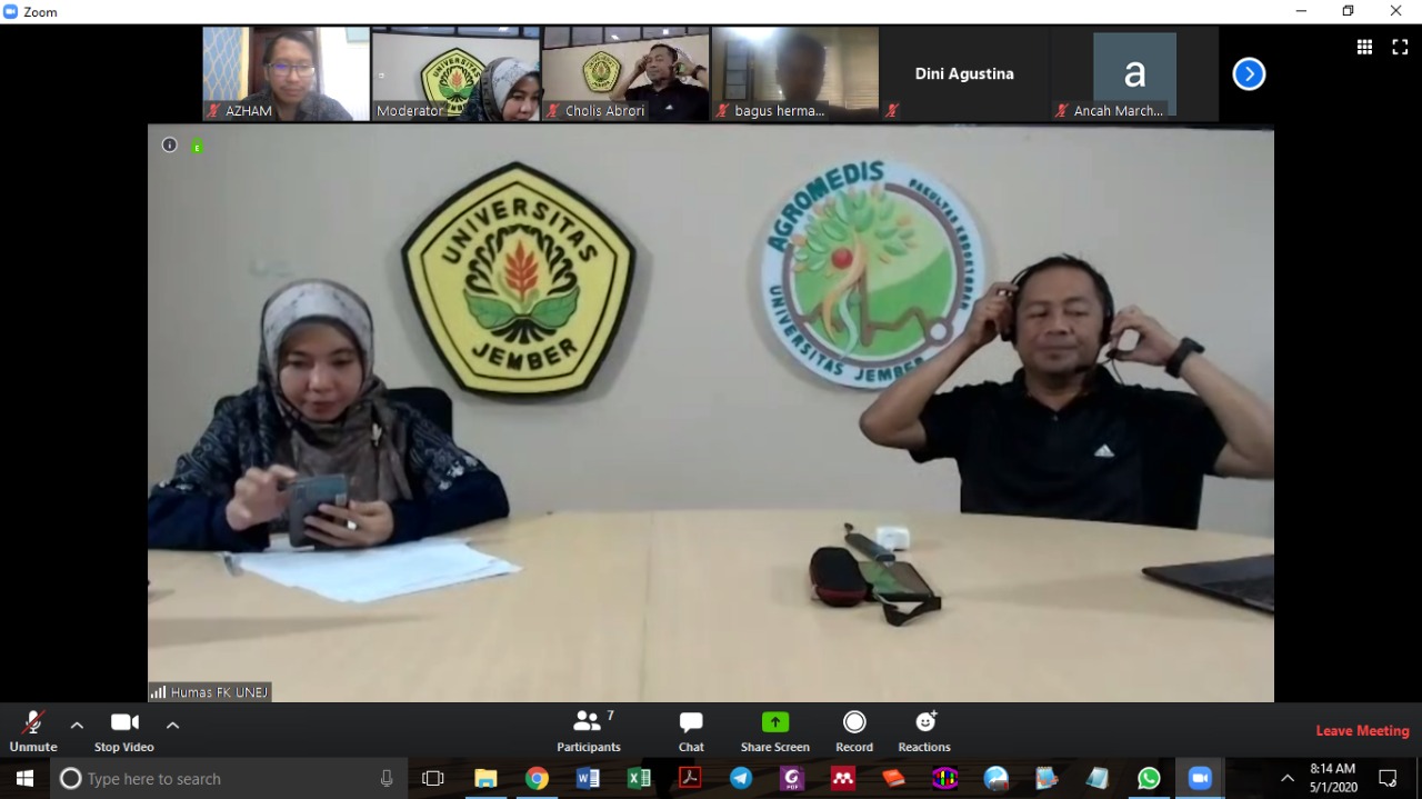 Kondisi kedaruratan covid-19 saat ini telah menimbulkan berbagai perubahan pada seluruh aspek kehidupan. Salah satu hal yang terdampak diantaranya adalah sektor pendidikan. Sistem pendidikan diselenggarakan secara online melalui Pembelajaran Jarak Jauh. Hal ini juga berpengaruh pada sistem assessment yang akan dilaksanakan. Assessment menjadi bagian dari suatu sistem pembelajaran, tetap harus dilaksanakan. Banyak tantangan yang akan dihadapi pada pelaksanaan assessment secara online. Oleh karena itu Fakultas Kedokteran Universitas Jember sekaligus dalam rangka memperingati hari pendidikan nasional tanggal 2 Mei, mengadakan webinar dengan judul “Online Assessment on Covid-19 Situation”.